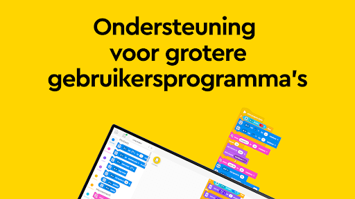 - Competenties ontwikkelen voor computational thinking en een geleidelijke toename van complexiteit ervaren door van een icoon-blok, naar een woordblok en ten slotte naar op tekst gebaseerd programmeren te gaan.
