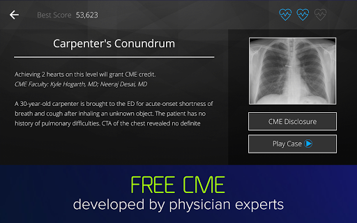 Pulm ex brengt tot leven spannende patiëntenkoffers die zorgverleners kunnen spelen om scherp te blijven in pulmonale geneeskunde. Verdien CME-credits, ontmoet eenmaal in-a-lifetime-cases en nodigt collega's uit om met u te spelen in het eerste professionele videogame ontworpen voor pulmonologen-GRATIS!