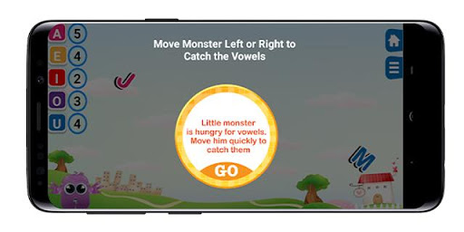 Feed the Hungry Monster by letting him eating the falling vowels