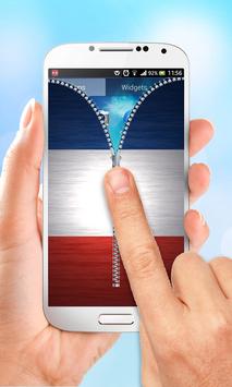France Flag Zipper Lock Screen is a cool lock screen application for android smartphones and tablets to all French and France lover. Forget the old ways of boring mobile device lock screen such as pin lock screen or fingerprint lock screen and try this brand new zipper lock screen with awesome France flag HD wallpapers and backgrounds. An beautiful France tricolour flag theme shows up on your mobilephone screen while it is locked and you have to unzip the zipper to unlock it, just drag the slider down until the end of your screen to unlock your phone. This amazing France flag zipper lock screen also play cool sound effect during phone zipper unlock to make it more fun and interesting.