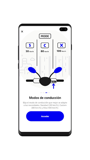 Verplaats je meer door de stad of vind je het leuk om de wind van de snelweg te voelen? Kies Standaardmodus en rijd met een snelheid van maximaal 50 km / uur met behulp van onze meest duurzame of aangepaste optie als u 80 km / u moet bereiken.