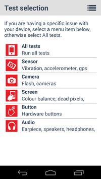 Device Test allows you to do a comprehensive test of your device. Tests include camera, sensors, screen, network, buttons, battery and audio.
