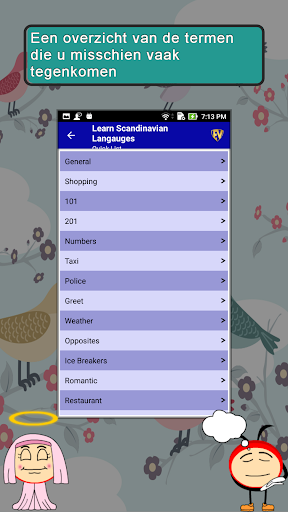 Learn Scandinavische talen SMART Guide is een uitgebreide talen leren app. Het is ontworpen voor beginners en gevorderden niveau. De offline talen leren app is voorzien van 2.135 essentiële woorden en zinnen netjes gestapeld onder 55 nuttige categorieën. Kenmerken van de app zijn Quick List, EduBank, Quiz, Contribute, Potpourri, Switch Lingo en Search. De app heeft talen zoals Engels, Zweeds, Deens, Fins, Noors en IJslands. Het bevat Uitspraak en fonetiek van woorden voor het eenvoudig leren.
