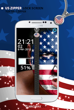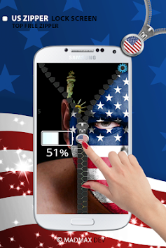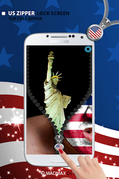 US Flag Zipper Lock Screen is a great zipper lock screen application with a charming angry american man displays on your lock screen while your phone is locked and you can unzip the screen with a amazing picture of statue of liberty to unlock your android smartphone.