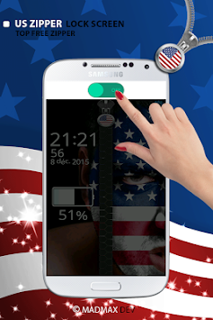 US Zipper Lock Screen application is a screen slider lock android application that could help you to lock and unlock your smartphone by awesome american badge zipper. United States zipper lock screen is simple and very easy to use. All you have to: drag the slider down and your android smartphone is unlocked.