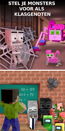 Monster School Mod voor Minecraft DISCLAIMER: Eigendom, intellectuele eigendomsrechten en andere belangen behoren toe aan de uitgevers of eigenaren. We respecteren dergelijke wettelijke rechten en belangen van de uitgevers of eigenaren. Deze app is geen officiële Minecraft-app en is niet gelieerd aan Mojang AB. Deze app gebruikt middelen en merken correct in overeenstemming met de richtlijnen beschreven op https://account.mojang.com/documents/brand_guidelines