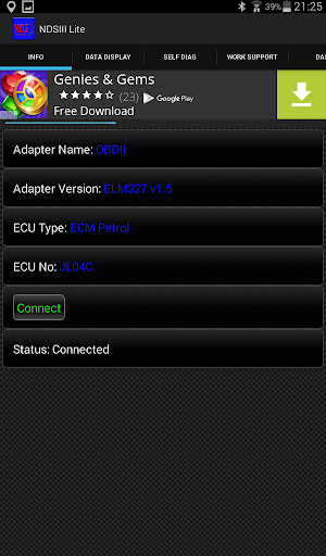 Deze applicatie ondersteunt benzineauto's. Het communiceert met de Motor ECU met behulp van Consult III-protocol. Het maakt gebruik van hetzelfde communicatieprotocol als de dealer diagnostische tool. Dit protocol is veel uitgebreider dan het generieke ISO15765-protocol.
