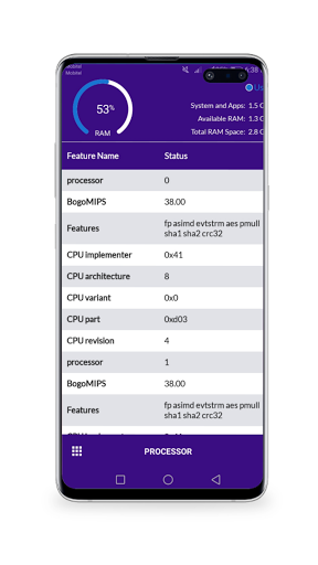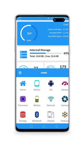 Device Info is een eenvoudige en krachtige Android-applicatie die u volledige informatie geeft over uw mobiele apparaat met geavanceerde gebruikersinterfaces. Device Info bevat informatie over CPU, RAM, OS, Sensoren, opslag, batterij, SIM, Bluetooth, netwerk, geïnstalleerde apps, systeem-apps, display, camera, thermisch, enz.