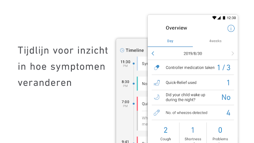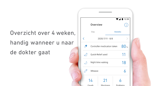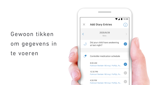 Dit is een app die ondersteunt bij het thuis registreren van de astma van uw kind.
