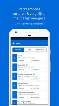 Vergelijk parkeerplaatsen met de lijstweergave en sorteer deze op tarief, afstand of bezetting.