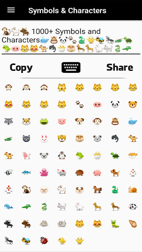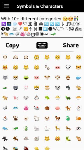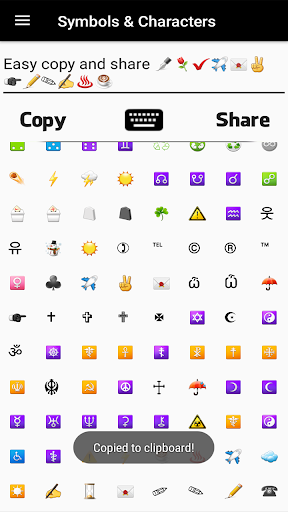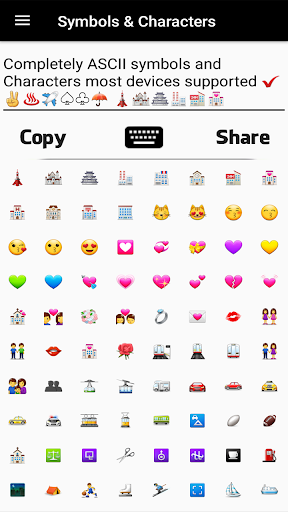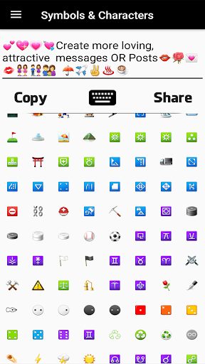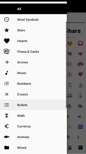 ✔ 15 different symbols and characters categories (Stars, Buildings, Hearts, Chess & Cards, Arrows, Music, Numbers, Cross’s, Bullets, Math, Currency, Animals, Flowers, Mixed, Food)