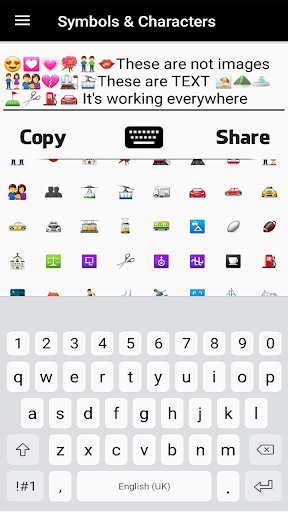 ➜ Some Application like official Facebook and Twitter Apps are not supporting text sharing except web URL’s so you can copy symbols and past it in these apps manually.