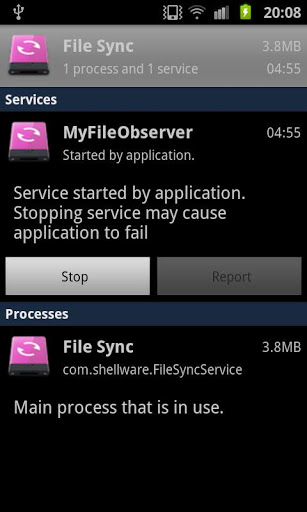 The Shellware File Synchronization Service is an Android stay-resident application that monitors your Camera and Download folders for new files.