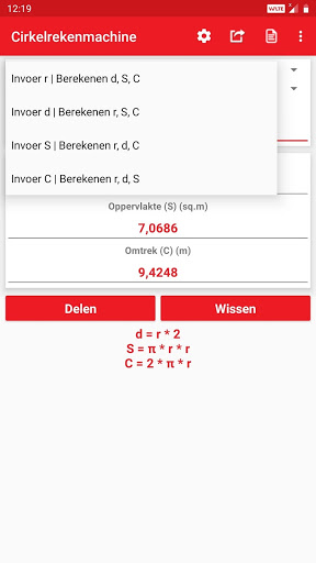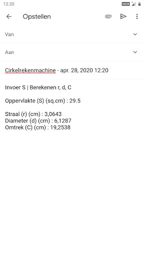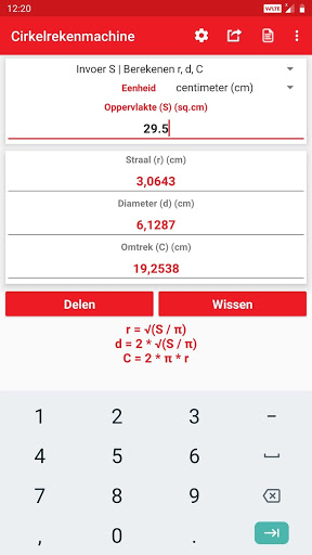 Berekende waarden en resultaten kunnen worden gedeeld met sociale media, e-mail, berichten en andere deel-apps.