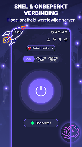 VPN - Fast Secure Proxy is een geavanceerde VPN-app ontworpen voor Android-apparaten die snelle, veilige en privé internetverbinding biedt aan gebruikers. VPN biedt gebruikers de mogelijkheid om hun verbindingen te versleutelen, een nieuwe IP te krijgen en ultieme online privacy te genieten. VNP biedt een veilige tunnel tussen uw apparaat en het internet, waardoor uw online identiteit wordt beschermd. Het blokkeert ook malware tijdens downloads, waardoor uw apparaat vrij blijft van virussen. Het high-speed servernetwerk van de app strekt zich uit over meerdere landen, waardoor privénavigatie zonder beperkingen en toegang tot alle inhoud van overal ter wereld mogelijk is, wat gebruikers helpt om in privé te reizen.