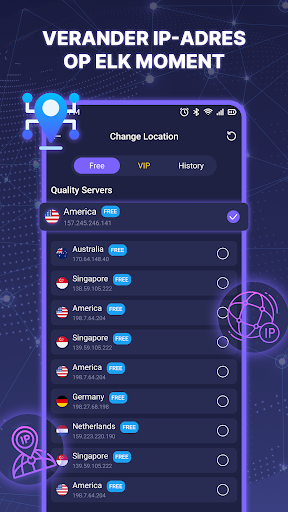 De app stelt u in staat om uw IP-adres snel en gemakkelijk te wijzigen, waardoor u het ultieme niveau van online anonimiteit krijgt. Dit biedt verdere bescherming online omdat het het moeilijker maakt voor hackers en andere kwaadwillende actoren om uw internetactiviteit te volgen.