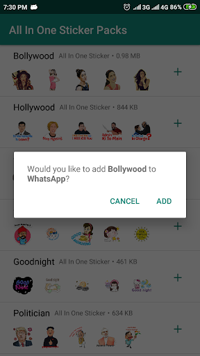 Note : Some Whatsapp version does not support stickers yet. Please wait for latest Whatsapp version to release.