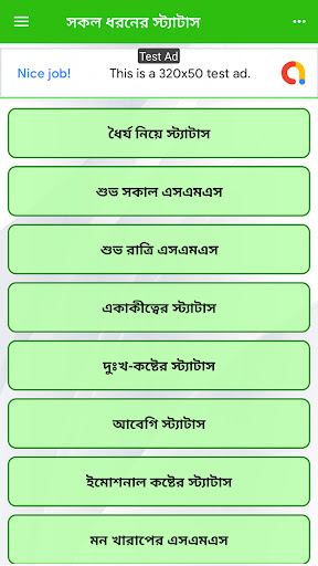 Hier is de status verdeeld in verschillende categorieën. Beste vriend Status Bangla voor vrienden. Er is een gebroken status Bangla voor mensen met gebroken geesten. F.B Status Bangla Bangla Status Caption eenvoudig en Bangla-status Download onze deze app. Depressiestatus Bangla verwijderen gemakkelijk de depressie van de geest.