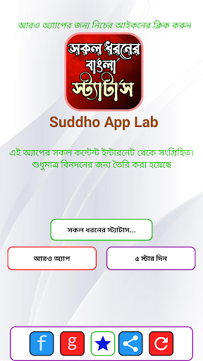আমাদের বাংলা স্ট্যাটাস অ্যাপটি সরাসরি নিচের লিংকটিতে ক্লিক করেও নামাতে পারেন HTPS: // PLAY. google.com/store/apps/details?id=com.suddho_app_lab.best_bangla_status