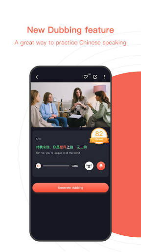AI will evaluate your pronunciation in terms of accuracy, fluency and other aspects to provide real-time feedback on your learning. The dubbing feature allows you to generate your own Chinese dubbing works to share with friends.