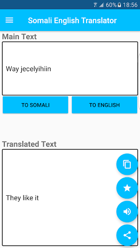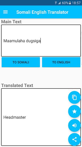 An awesome, free and fast Somali translator to help you translate any Somali words to English and from English to Somali. Can also act a dictionary.
