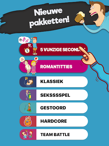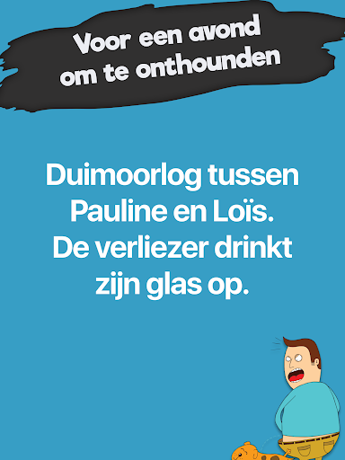 ▸ Alle klassieke drankenspelletjes als "Nog nooit heb ik" of "Zou je liever", groepstemmen en irritante (maar hilarische) regels die je moet volgen tot het einde van de avond...