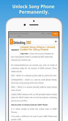 Met onze ontgrendeling360.com ontgrendel de Sony -telefoon -app, kunt u uw Sony -mobiele telefoon ontgrendelen door IMEI -code.Deze methode is snel en veilig.