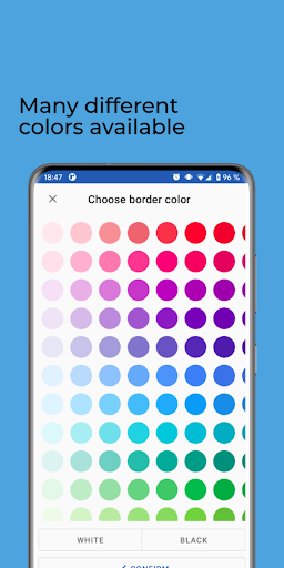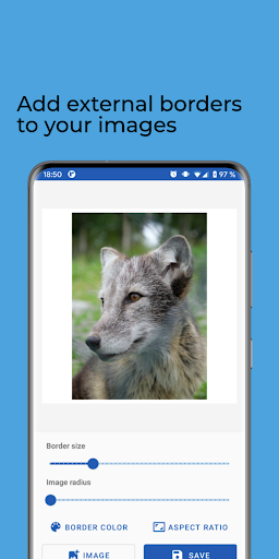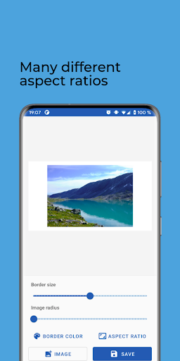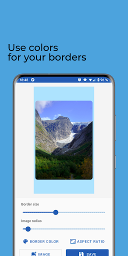 With the help of this app you can add external borders to your images. It supports many different kind of colors and aspect ratios. All features can be used for free!