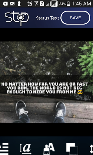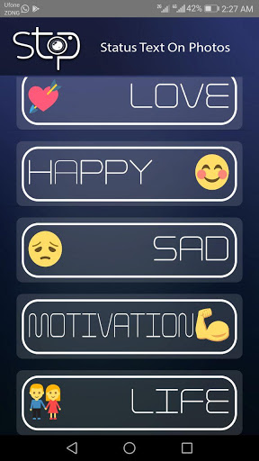 Stop app is new application to help you out with making your status images with out any difficulties you can put status on images .