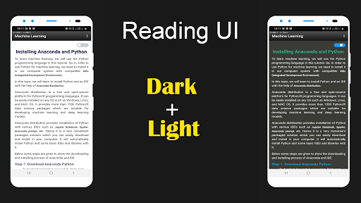 - het ondersteunt zowel de lichte als de donkere modus om te lezen.