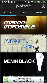 Con Plotspot podrás conocer todas la localizaciones donde está ambientada una película y saber que parte de la historia ocurre en cada localización. Tendrás información completa de lo que ocurre en la localización, enlaces directos a las páginas oficiales de los lugares de la película o a wikipedia para profundizar la información, fotos de las localizaciones y sistema de mapa con geo-localización para conocer exactamente donde se encuentra el lugar y dónde te encuentras tú respecto al lugar.