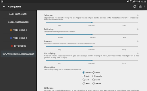 laat je precies zien wat de camera ziet; je kunt overal de positie van de camera aanpassen. Je hebt de mogelijkheid om video’s op te nemen en foto’s te maken en deze intern op te slaan op je mobiel of tablet.
