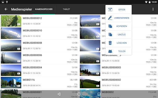 toont alle door de camera opgenomen video’s en foto’s; zo kun je zonder computer je video’s bekijken. Ook kun je overal makkelijk media vanaf de camera kopiëren naar je mobiel of tablet en zo ruimte besparen op de geheugenkaart.