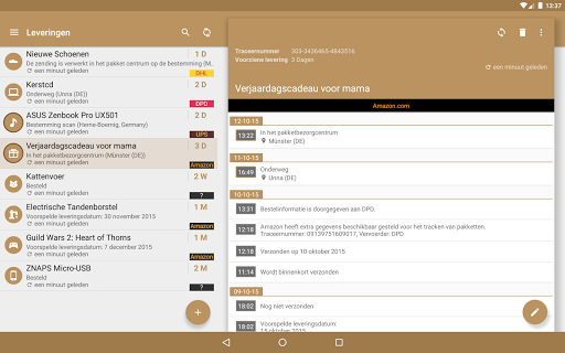 Met Deliveries voor Android kunt u al uw pakketverzendingen bijhouden in een oogopslag. Waar je ook bent, voeg de levering via de tracking ID toe en zie waar het is. Je bent slechts één klik verwijderd!