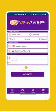 Vela Tunnel VPN | This app is base from SSH SSL AND OPENVPN and rebuilt to implement Custom Header Injector Service and SSL Server Name Indicator SNI. All illegal activities are strictly prohibited.