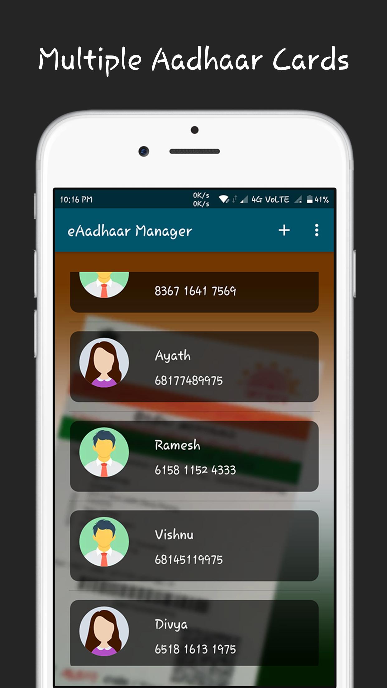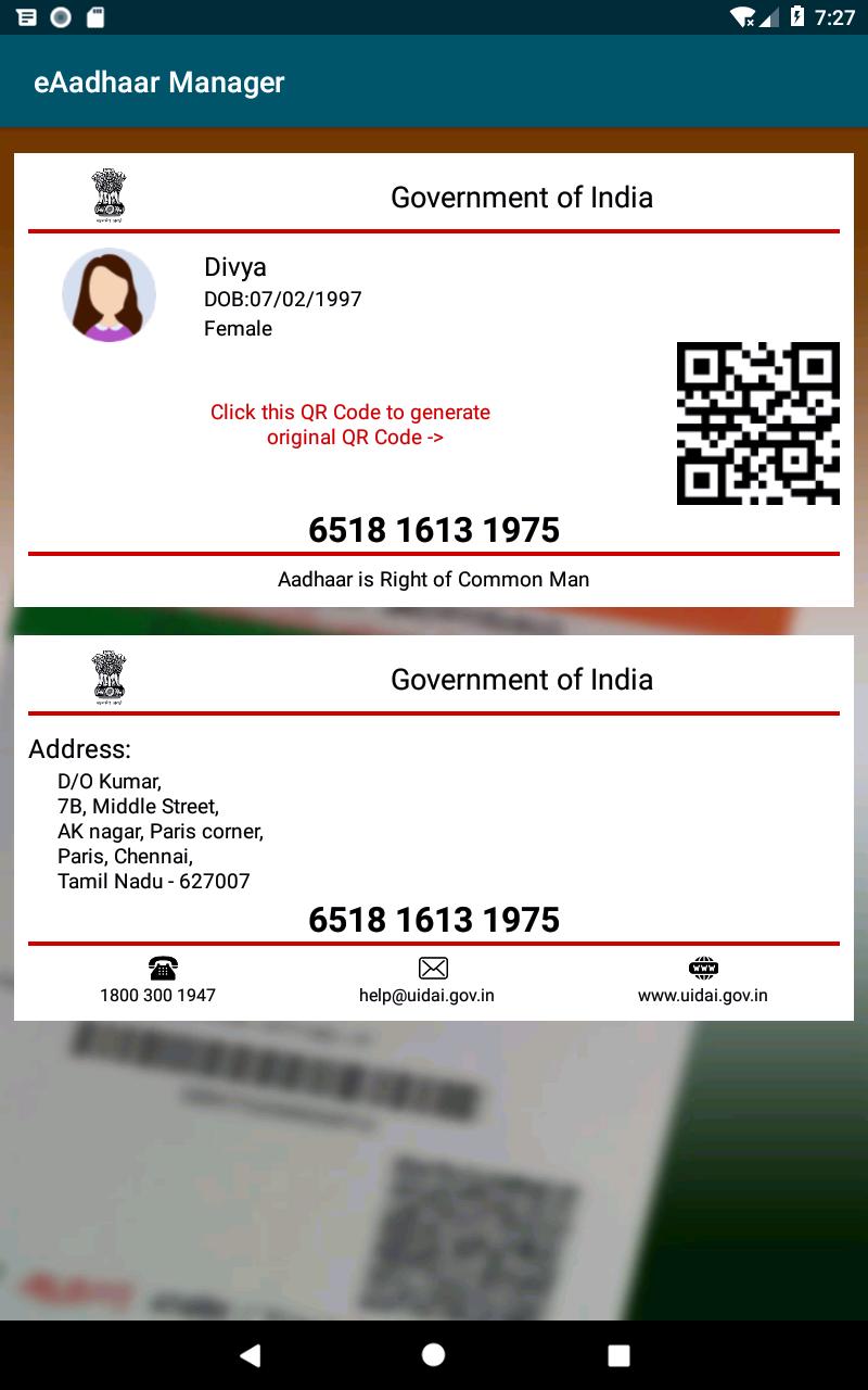 Once the aadhaar cards are linked to this app, you don't have to carry aadhaar cards all the time. Your card details are stored along with QR code which can be used for scanning instead of scanning your physical aadhaar card so that you can completely replace your physical aadhaar card with this e-Aadhaar card.