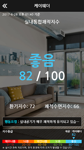 2. Binnen geïntegreerde aangename index: effect van verschillende elementen op menselijk lichaam en de ontwikkelde uitdrukking in aanmerking van de mate van vervuiling. De zes elementen die in de kamer worden waargenomen, worden toegepast op de mate waarin zij van invloed zijn op het genot, opleveren van de index en presenteert actietips voor het verbeteren van de binnenomgeving.
