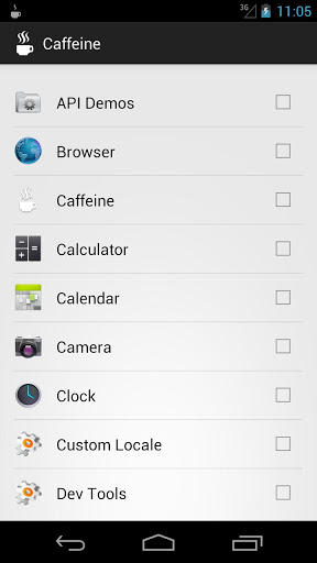 This app keeps your device from going to standby while selected apps are running in the foreground (the screen is dimmed, though). Manual standby using the power button is still possible.