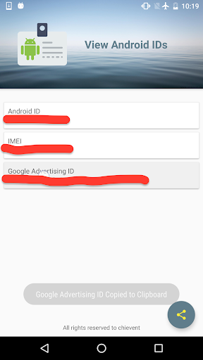 This is a simple app used to view, copy and share Android Device ID, Google Advertising ID and IMEI.