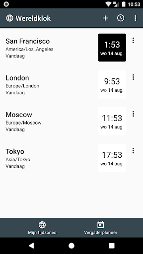 Wilt u weten hoe laat het is in een ander land of stad? Deze app is de perfecte wereldklok en vergaderplanner. Je kunt hem gebruiken als zelfstandige app of als widget.