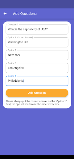 1- Voeg de meerkeuzevragen en antwoorden toe om een nieuwe quiz te maken.