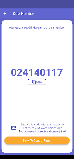 2- Deel het 9-cijferige quiznummer met uw studenten / stagiairs.