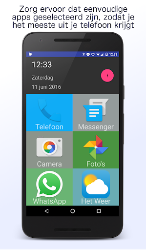 Voor de beste resultaten selecteer Senior Startscherm als your launcher app, of home screen app. Druk op de home knop van je telefoon nadat je Senior Startscherm hebt geïnstalleerd, en kies Senior Startscherm 'Altijd gebruiken' als je launcher of home scherm applicatie.