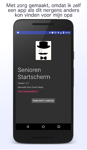 Deze app is speciaal gemaakt om oudere mensen te helpen met hun smart phone. Vaak hebben ze maar een paar apps nodig, en dat is exact wat deze app brengt. Standaard staan er drie apps geconfigureerd, maar dit kan zeer eenvoudig aangepast worden naar welke apps je ook wilt. Idealiter wordt dit gedaan door iemand die een beetje handig is met smart phones.