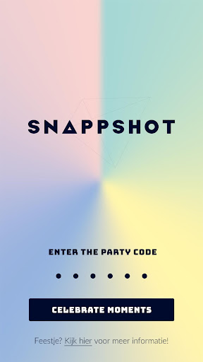 Voor Snappshot is een partycode nodig, voor meer informatie www.snappshot.party