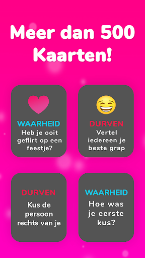 Waarheid of Durven? Dit spel is perfect voor feestjes, afspraakjes of gewoon om het ijs te breken. Het is zeker om u van een ongelooflijke hoeveelheid pret te voorzien! Ons spel is ontworpen voor Tieners, Volwassenen en Koppels dus het is perfect voor een episch feest of een ondeugende nacht als een paar. We hebben het speciaal ontworpen om samen met vrienden te spelen, dus je bent in voor een onvergetelijke avond!