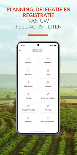 2. Begin met het plannen, delegeren en registreren van opdrachten, zoals spuiten, bemesten, snoeien, enz. vanaf je mobiele telefoon.