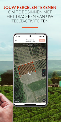 1. Teken jouw percelen om te beginnen met het bijhouden van activiteiten per perceel met behulp van de eenvoudige tekenfunctie in de app.