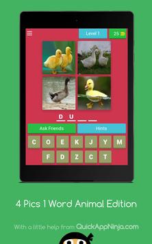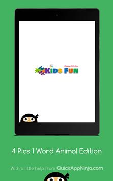 4 Pics 1 Word Animal Edition is here to accompany children in recognizing animal pictures, animal names and letters.