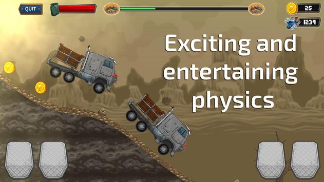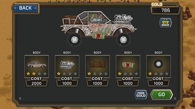Take part in the Apocalyptic hill climb racing and become the greatest dealer across the land! In the apocaliptic world all goods are gold. Customize your vehicles, organize a convoy, travel through vast deserts and highest hills to become the greatest dealer across the land!
